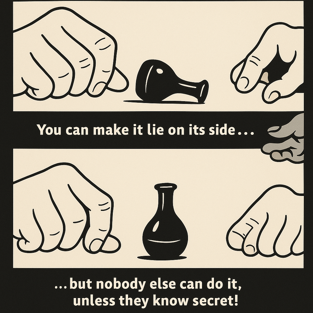 Ghost Bottle Magic Trick – the bottle that refuses to lie down! No matter how hard anyone tries, the bottle stays upright… unless the magician performs the secret move that makes it fall effortlessly.